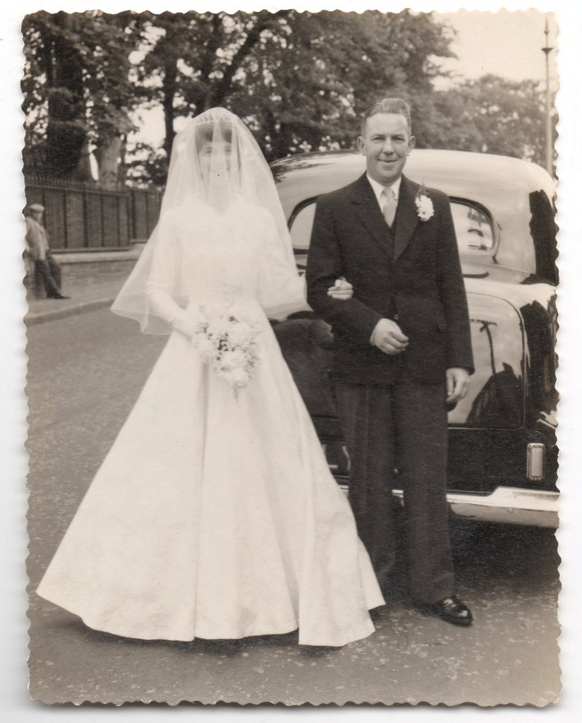 The first image is of my grandfather and my mother on her wedding day. My mother was the eldest of my grandfather’s two daughters and this was oviously a very special day. Both my mother and grandfather are smiling and seem genuinely happy, if my grandmother had been in the picture I’m not sure she would have been smiling as she did not approve of my father. My grandfather on the other hand did get on with my father and would have been happy if my mother was.