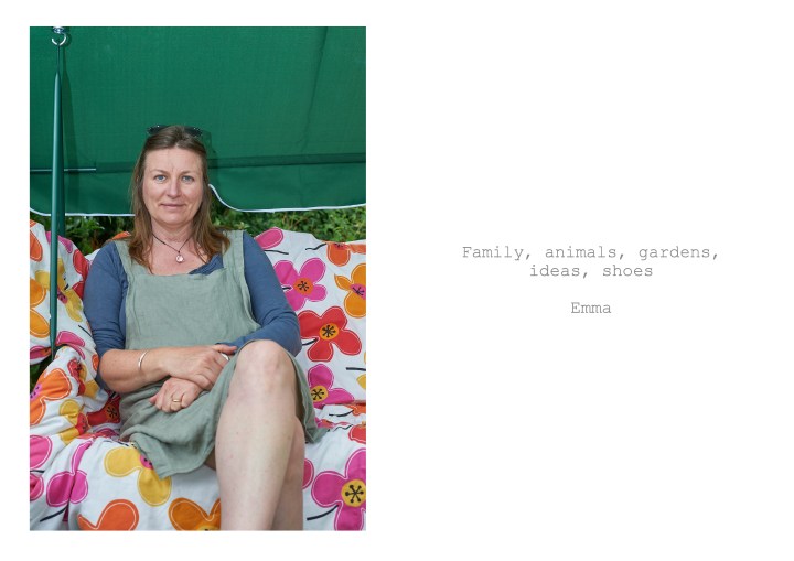 The photographs were taken both indoors and outdoors, the locations being chosen by the subjects. For some of the outdoor images I used fill-in flash and for the indoor images I used either natural light, bounced flash and off-camera flash shot through an 80cm soft box. Although the brief for the assignment called for the images to be visually consistent, I was did not want them to be too formulaic and was happy for variations in location, lighting and pose as these decisions were driven by the individuals being photographed. The two factors I tried to keep consistent across the images were, first that the orientation of all the images would be portrait and second that, as far as possible, the subjects should have a neutral expression. In order for the images to be my representation of the people being photographed, I took all the shots before receiving the text from the subjects.